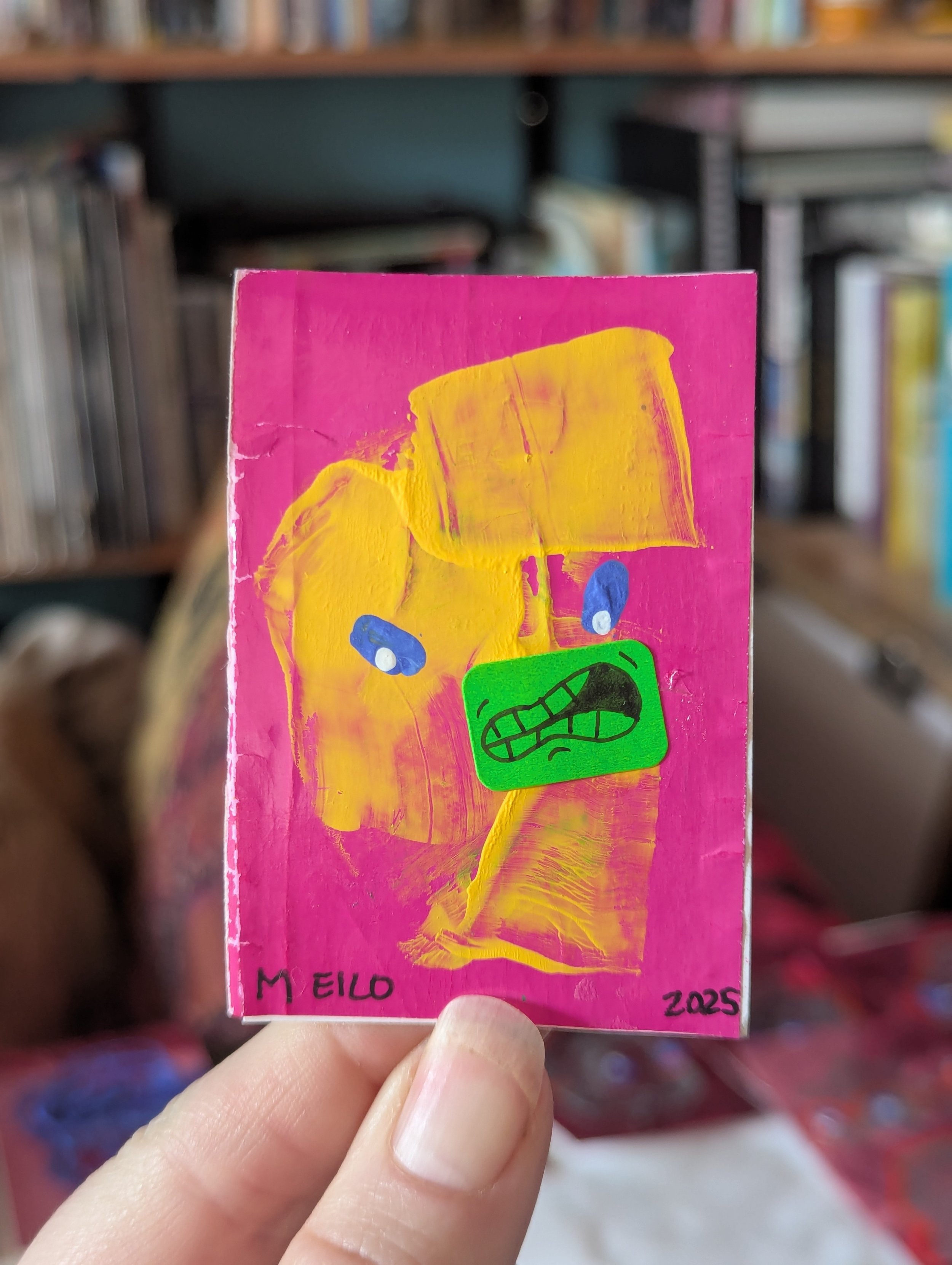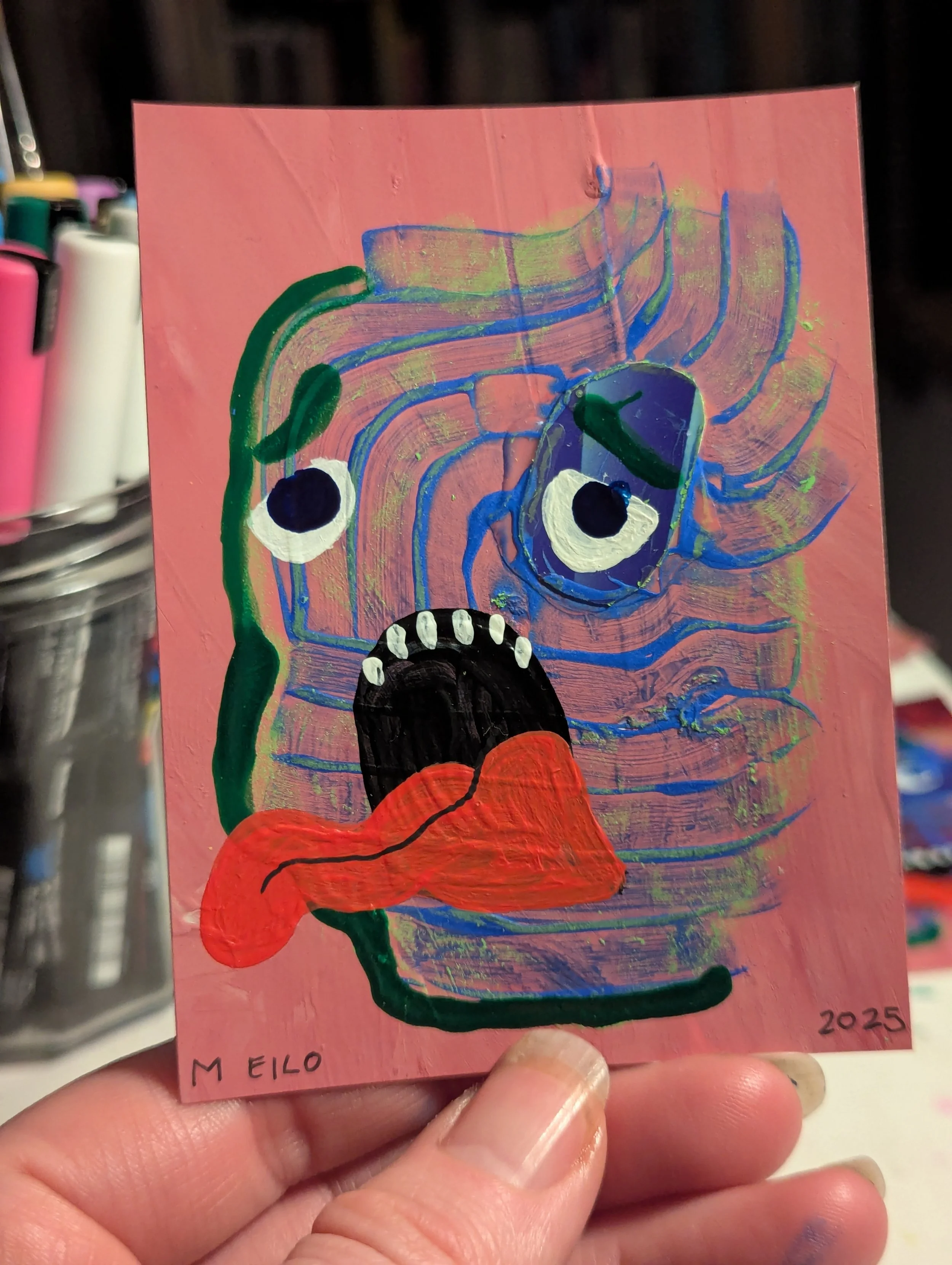 Lil Guys are a series of mixed media paintings experimenting with equitable art sales. For ever paintings sold I also gift a painting to the artists, art workers, and art fans in my community who can not afford to own the work they love.
